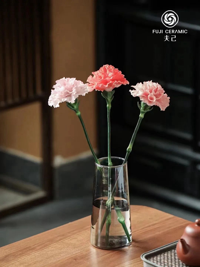 走進韻麗陶瓷展廳,仿佛進入了花的世界:花瓶中的康乃馨靜靜綻放,波浪般的花瓣呈現(xiàn)出溫柔的水紅色;池中荷花含羞待放,嫩粉色花苞清透靚麗;簇簇郁金香花色清新靈動,向陽熱烈生長。