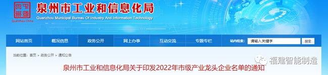 泉州市工業(yè)和信息化局關(guān)于印發(fā)2022年市級(jí)產(chǎn)業(yè)龍頭企業(yè)名單的通知