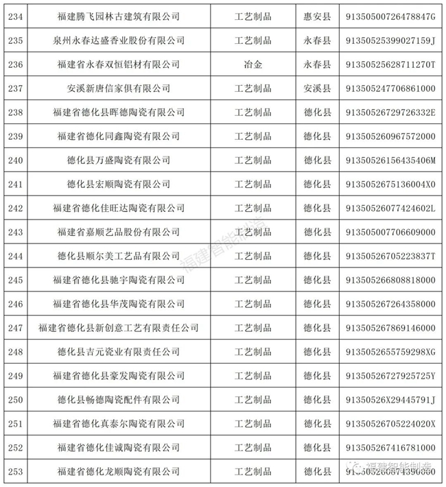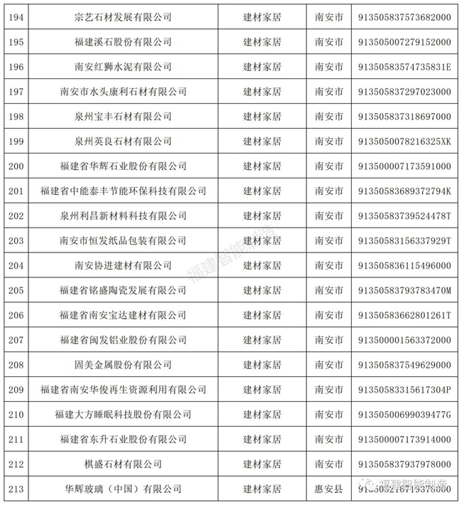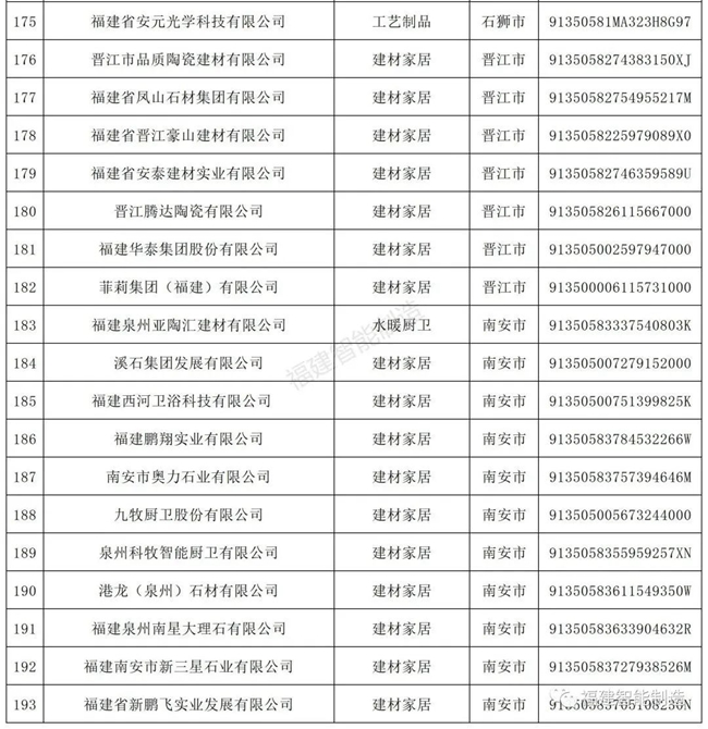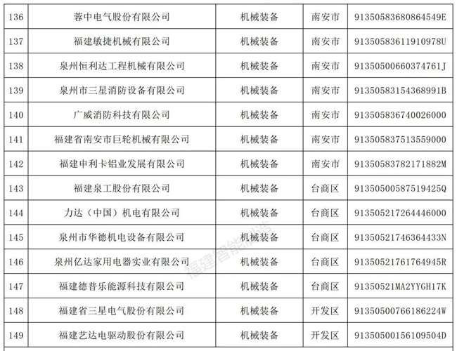 2022年泉州市級(jí)產(chǎn)業(yè)龍頭企業(yè)名單(機(jī)械裝備、家居建材、工藝制品)