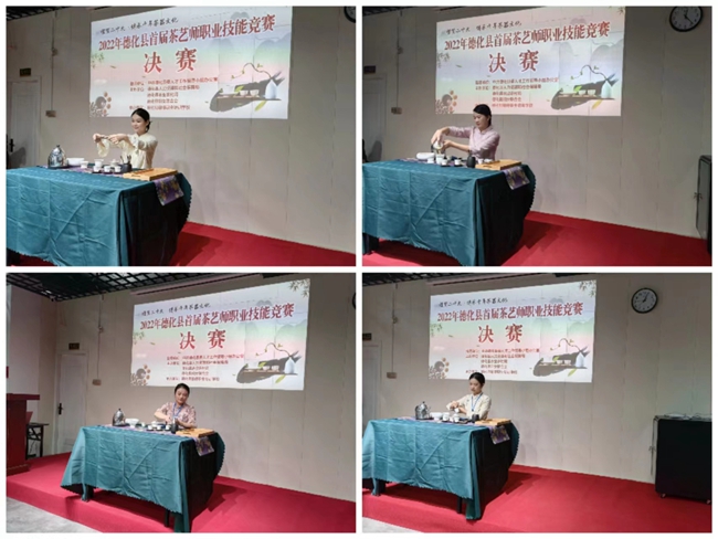 決賽分規(guī)定茶藝競(jìng)技和創(chuàng)新茶藝競(jìng)技兩部分,比賽現(xiàn)場(chǎng),伴隨著古典清雅的音樂,參賽選手一個(gè)個(gè)氣定神閑、舉止優(yōu)雅,溫具、置茶、沖泡、奉茶,一雙雙巧手在茶席間流轉(zhuǎn),淋漓盡致地展現(xiàn)著茶與器的相濡以沫。經(jīng)過激烈角逐,評(píng)出一等獎(jiǎng)1名,二等獎(jiǎng)2名,三等獎(jiǎng)3名?h人社局為獲得第一名的選手授予“德化縣技術(shù)能手”榮譽(yù)稱號(hào)。