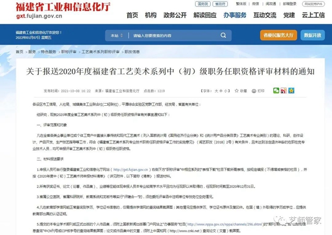 2018年12月28日,根據(jù)福建省委辦公廳、福建省人民政府辦公廳《關(guān)于深化職稱制度改革的實施意見》等文件精神,在省職改辦指導下,福建省工業(yè)和信息化廳對工藝美術(shù)專業(yè)職稱評審辦法進行了修訂,突出強調(diào)品德、能力、業(yè)績的考核,倡導德藝雙馨。
