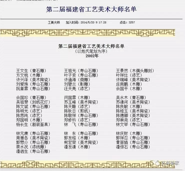 第六屆福建省工藝美術大師與福建省工藝美術名人