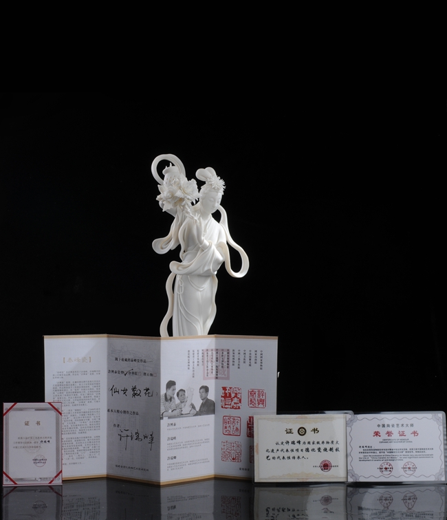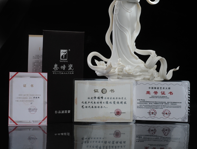 更為難得的是許氏瓷塑的歷代傳承人,可謂是瓷都德化知名的陶瓷名家,許友義為近代陶瓷名家,許興泰、許瑞峰為中國工藝美術(shù)大師。許氏瓷塑其代表類作品主要為仙女、觀音佛像等。