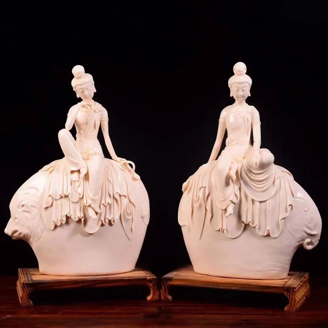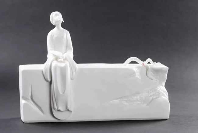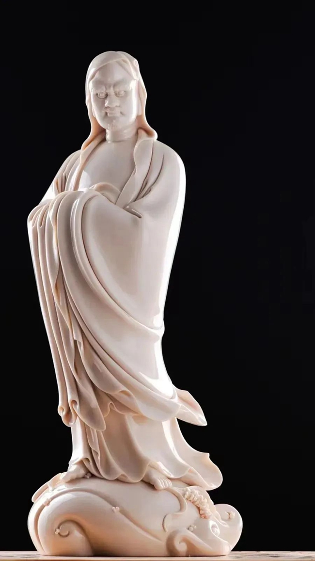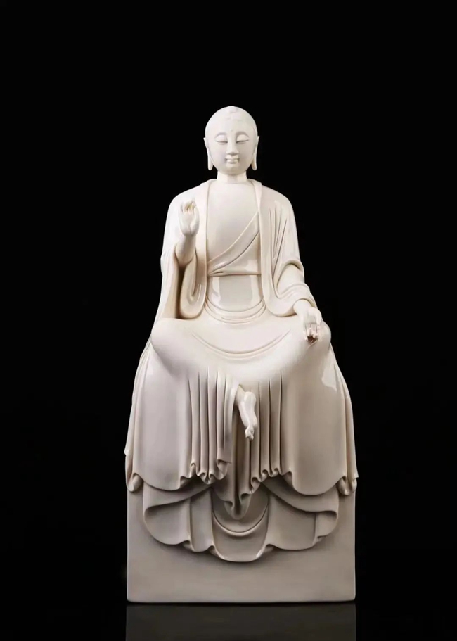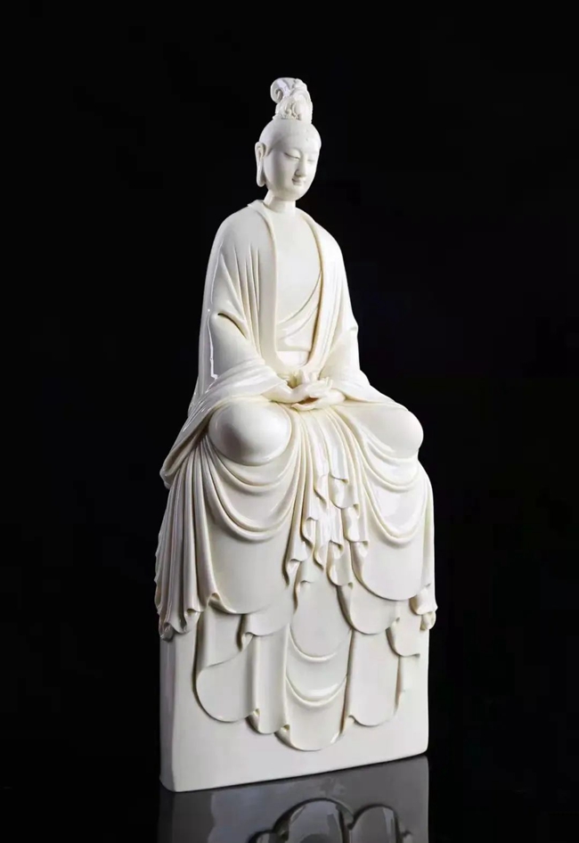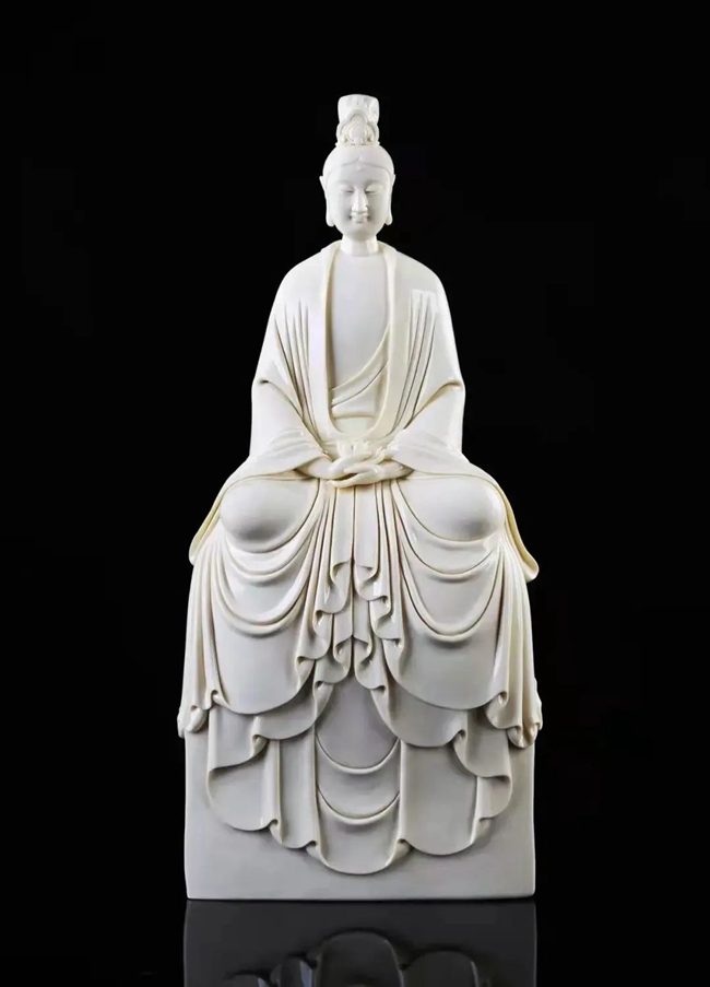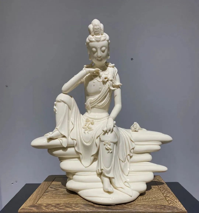 在所有題材創(chuàng)作中,陳建陽(yáng)偏愛(ài)人物題材創(chuàng)作,在人物塑造方面積累了大量的經(jīng)驗(yàn),無(wú)論是觀(guān)音、羅漢、彌勒、達(dá)摩,還是古典仕女、傳統(tǒng)人物等,造型簡(jiǎn)練大方、線(xiàn)條清晰流暢,人物體態(tài)自然、面部表情舒緩,再加以白瓷素凈典雅的特性,使陳建陽(yáng)的人物雕塑更顯雅致。