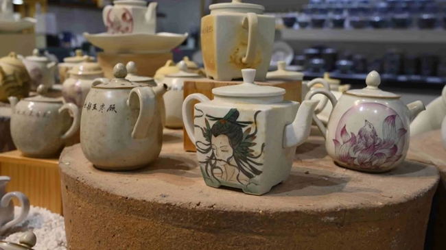 走進(jìn)中國(guó)茶具城,街道兩側(cè)排布著大大小小的茶具及配套產(chǎn)品企業(yè)展廳。走入一家,便可看到展架上琳瑯滿目的特色茶具,有配以四季花卉圖案的季節(jié)主題茶盞,有溫潤(rùn)透亮、做工精美的白瓷茶杯,還有適用于贈(zèng)人、自用不同場(chǎng)景的套裝茶具。