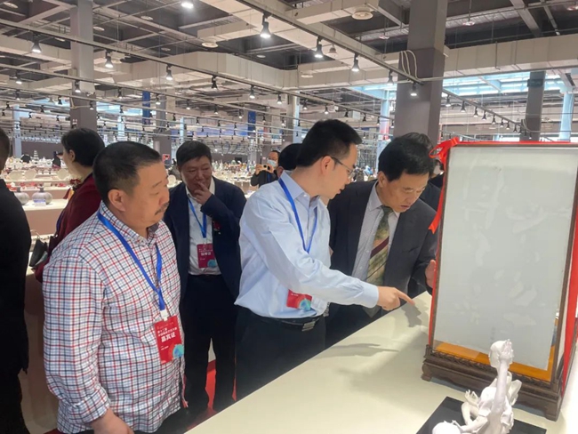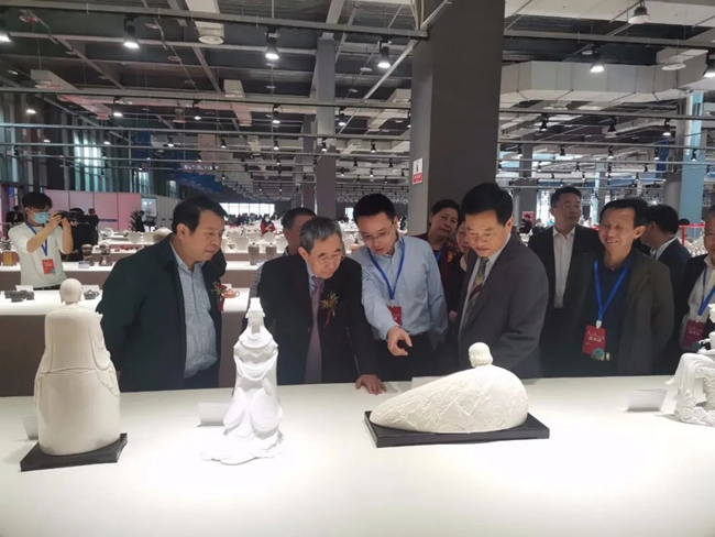 11月7日上午,第十二屆中國(guó)陶瓷藝術(shù)大展開幕。中陶瓷協(xié)會(huì)理事長(zhǎng)杜同和帶領(lǐng)中陶瓷協(xié)會(huì)成員一同參觀了第十二屆中國(guó)陶瓷藝術(shù)大展的德化瓷展臺(tái)。參觀中,縣政府副縣長(zhǎng)洪仰行向中陶瓷協(xié)會(huì)理事長(zhǎng)杜同和一行詳細(xì)介紹了德化此次參展的作品,中陶瓷協(xié)會(huì)理事長(zhǎng)杜同和對(duì)德化瓷給予了高度評(píng)價(jià),并希望德化大師開拓創(chuàng)新,爭(zhēng)取創(chuàng)作出更多更好的作品,為“中國(guó)白·德化瓷”作出積極貢獻(xiàn)。
