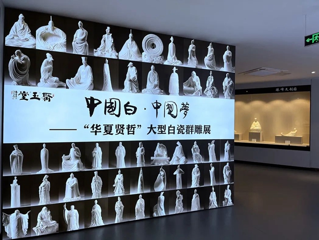 在藝術(shù)館的3樓,林建勝的“中國白、中國夢——《華夏賢哲》大型白瓷雕展”目前正在展出。100尊古代賢哲齊聚,他們性格凸顯、神態(tài)各異,工程之浩大令人驚嘆。這一系列作品,填補(bǔ)了中國陶瓷史上大型系列歷史人物創(chuàng)作的空白,獲得中國工藝美術(shù)最高獎(jiǎng)——“百花獎(jiǎng)”金獎(jiǎng)。