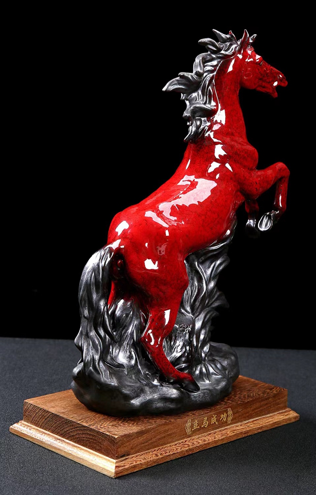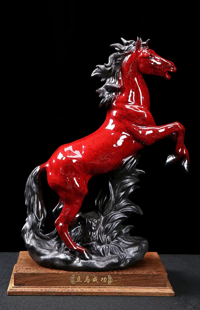 《立馬成功》由全國(guó)陶瓷技術(shù)能手、福建省陶瓷藝術(shù)大師蔡國(guó)海設(shè)計(jì)創(chuàng)作,其為蔡國(guó)海代表作品這一。作品可見駿馬精神抖擻,身強(qiáng)力壯,迎風(fēng)奔馳,皮膚下面,是熱血奔涌的血管,進(jìn)而是塊狀的肌肉與健壯的骨架,馬的蹄、鬢毛、眼神、耳朵、乃至鼻息,都傳遞出濃烈的信息,具有較強(qiáng)的藝術(shù)感染力。作品做工精細(xì),配有作者親筆簽名收藏證書及精美禮盒包裝,是家居擺設(shè)及禮品饋贈(zèng)的好選擇。