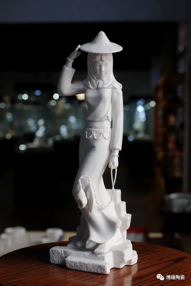 《趕海》由工藝師設(shè)計(jì)創(chuàng)作。作品以德化溫潤如玉的德化白瓷為胎質(zhì),經(jīng)1300多度高溫?zé)疲ンw溫潤如玉,胎體通透,溫潤如玉,瓷感細(xì)膩。作品以寫實(shí)雕塑手法,見一民間風(fēng)情女子,頭帶斗笠,頭巾捂住雙頰下頜,上身穿短狹斜襟衫,露出肚臍,下穿寬大黑褲,抬腳盤坐石子,獨(dú)具風(fēng)采。作品純手工雕刻,細(xì)致刻畫,所到之處無不精細(xì)贊嘆,足見大師在創(chuàng)作時(shí)的獨(dú)運(yùn)匠心,作品有大師印章落款,兼具審美價(jià)值和收藏價(jià)值,是一件不可多得的收藏精品。是辦公、家居、書房裝飾擺設(shè)、禮贈、收藏的好選擇。