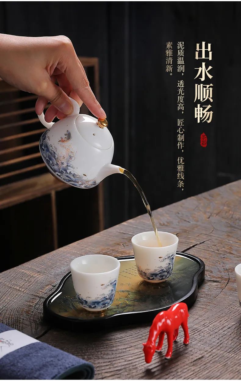 黃旭東用心思考茶與器的和諧之道。他充分利用自己花紙廠的資源,花費了大量時間潛心研究特殊的陶瓷花紙工藝,同時思考什么樣的材質(zhì)裝飾可以為本已經(jīng)完美的羊脂玉加分。如果設(shè)計材料毫無亮點則畫蛇添足、弄巧成拙。