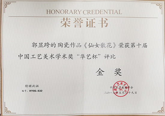 2017年05月《仙女散花》榮獲第十屆中國工藝美術(shù)學(xué)術(shù)獎(jiǎng)“華藝杯”評比金獎(jiǎng)。