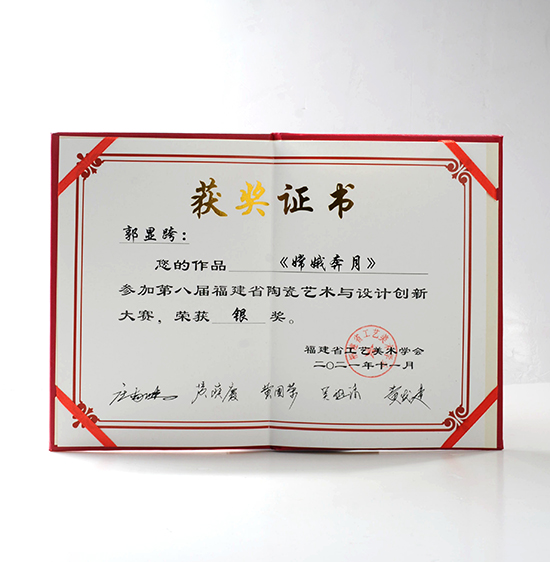 2021年11月《嫦娥奔月》獲榮第八屆福建省陶瓷藝術(shù)與設(shè)計(jì)創(chuàng)新大 賽銀獎(jiǎng);