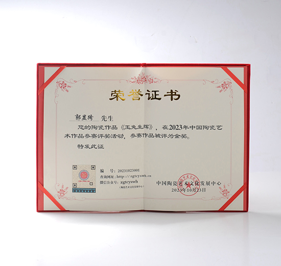 2023年10月《玉兔生輝》榮獲2023年北京中國陶瓷藝術(shù)名家作品評 比金獎(jiǎng);