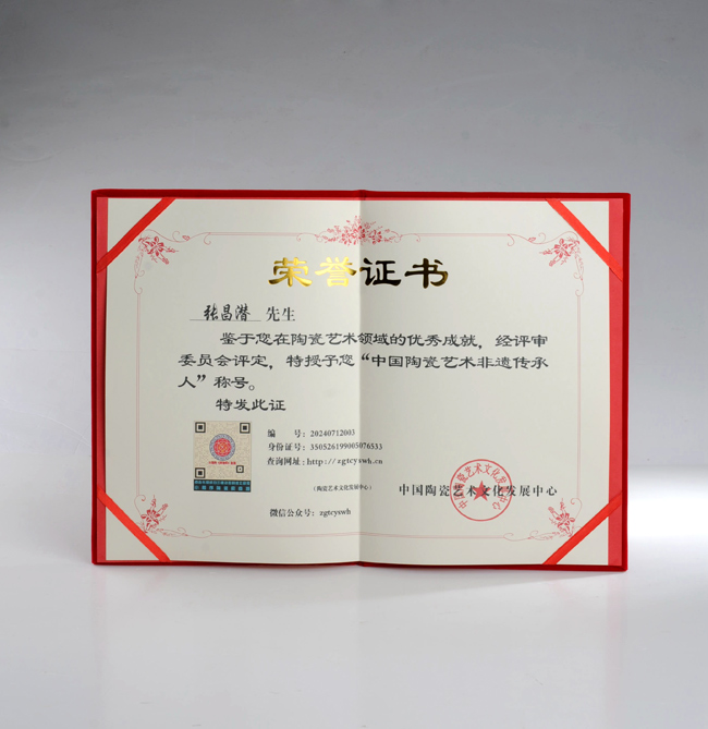 張昌潛,1990年出生于福建德化,中國陶瓷藝術非遺傳承人、中國陶瓷藝術文化發(fā)展中心會員、優(yōu)秀創(chuàng)作坊工作室、見友臻品藝術總監(jiān)。