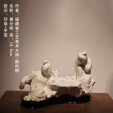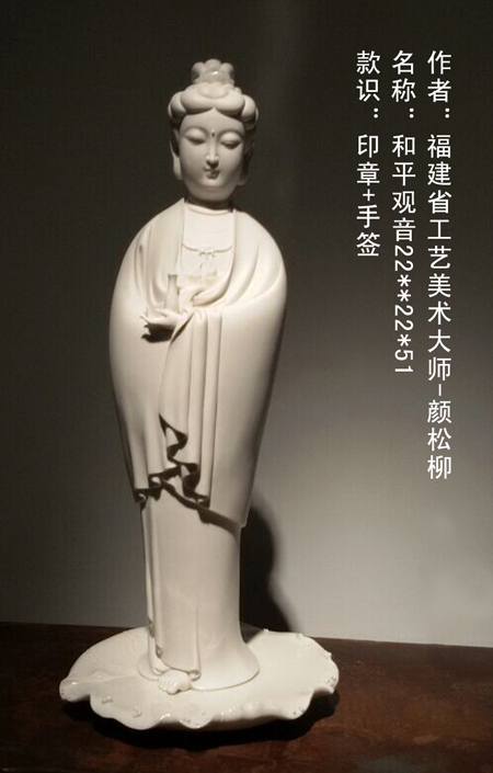 顏松柳,男,1977年8月出生,高級(jí)工藝美術(shù)師,高級(jí)技師,福建省技術(shù)能手,福建省工藝美術(shù)大師,中國(guó)收藏家喜愛的陶瓷藝術(shù)大師,F(xiàn)任德化瓷言坊藝術(shù)總監(jiān),泉州工藝美術(shù)學(xué)院客座教授,泉州市工藝美術(shù)協(xié)會(huì)理事,福建省工藝美術(shù)學(xué)會(huì)理事,中國(guó)陶瓷工業(yè)協(xié)會(huì)陶瓷藝術(shù)專業(yè)委員理事。1993年學(xué)藝于百年老字號(hào)“蘊(yùn)玉瓷莊”,1995年畢業(yè)于德化陶瓷職業(yè)技術(shù)學(xué)校,進(jìn)修于福建工藝美術(shù)學(xué)校雕塑系、中央工藝美術(shù)學(xué)院陶瓷系。2005年創(chuàng)立“瓷言坊”,期間為西安大唐芙蓉園設(shè)計(jì)制作大型組雕《召見使節(jié)》、作品《唐韻仕女》被西安市政府選贈(zèng)首次來訪的中國(guó)國(guó)民黨主席連戰(zhàn)和親民黨主席宋楚瑜(合作);為德化陶瓷博物館設(shè)計(jì)制作大型陶瓷浮雕壁畫《瓷國(guó)史話》(合作);2006年榮獲“中國(guó)收藏家喜愛的陶瓷藝術(shù)大師”稱號(hào), 作品多次獲得“百花獎(jiǎng)” 、“金鳳凰”、“爭(zhēng)艷杯”等專業(yè)藝術(shù)設(shè)計(jì)大賽金獎(jiǎng)。作品《春風(fēng)得意馬蹄疾》收藏于“中國(guó)工藝美術(shù)館”、“英國(guó)珍寶博物館”;《一葦渡江》收藏于“英國(guó)珍寶博物館”、“福建博物院”;《觀滄!肥詹赜“福建工藝美術(shù)珍品館”。