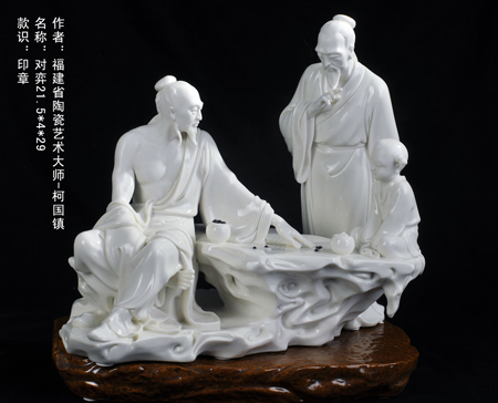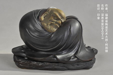柯國鎮(zhèn),1967年出生于瓷都德化,師從國家級陶瓷藝術(shù)大師柯宏榮、陳桂玉夫婦,學(xué)習(xí)傳統(tǒng)陶瓷雕塑創(chuàng)作,掌握并能巧妙運(yùn)用各種技術(shù)。其作品造型粗獷中見精細(xì),構(gòu)思出奇制勝,用簡單的藝術(shù)手法追求一種自然美和抽象美。