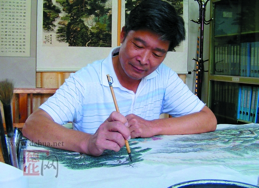 陳啟星原是德化第三中學(xué)校長、黨支部書記,從小隨父親習(xí)書作畫。退休以后更是勤學(xué)苦練,數(shù)十年臨池不輟,醉心翰墨,書畫兼善。盡管年過花甲,他還是每天筆不離手,樂此不疲,潛心學(xué)習(xí)、研究和創(chuàng)作。同時,他虛心請教名師,參加老年大學(xué)學(xué)習(xí)交流。他為人謙和厚道,淡泊名利,性情樂觀,作品朝氣蓬勃、欣欣向榮,充滿青春氣息。在書法方面,以楷、行、隸、篆為功底,以隸、篆見長;在作畫方面,以傳統(tǒng)中國畫為主,以山水畫為佳。他在創(chuàng)作中一絲不茍,或皴擦,或點染,或勾勒,無不極精煉明快,處處體現(xiàn)他對筆法清晰的認識和精到的把握。他對家鄉(xiāng)德化情有獨鐘,作品多以德化山水風(fēng)光為創(chuàng)作題材,傾注了他對家鄉(xiāng)山水最真摯的情感。如《九仙山勝景》、《石牛山勝景》、《戴云人家》、《翠壑幽居》等作品,畫中一石一水、一草一木,自然生動,情趣盎然,故鄉(xiāng)風(fēng)情盡在其中。
