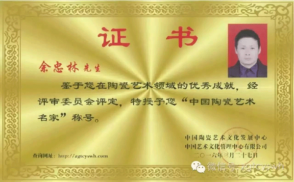 個(gè)人簡介: 余忠蘇,藝名余忠林,1978年出生在China瓷都景德鎮(zhèn),畢業(yè)于景德鎮(zhèn)陶瓷學(xué)院。江西省高級技師(國家一級)、江西省工藝美術(shù)師、江西省陶瓷工藝美術(shù)家協(xié)會會員、珠山區(qū)陶瓷美術(shù)家協(xié)會會員、景德鎮(zhèn)高級工藝美術(shù)師。