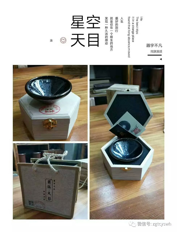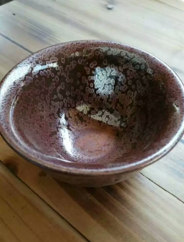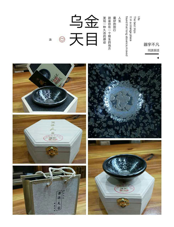 天目釉通常于氧化鐵成分較高的陶瓷釉料,傳統(tǒng)制作工藝研成,1310度以上高溫?zé)七^程,火候不同的溫段情況下,氧化鐵與其礦合物相融互體產(chǎn)生變化,釉面結(jié)晶多彩斑紋,通稱“天目”釉。國際陶瓷界通稱“temmokn""。歷代以來陶瓷釉史載中‘天目釉’是既名貴又有收藏價(jià)值的上乘鑒賞之釉稱號(hào)。