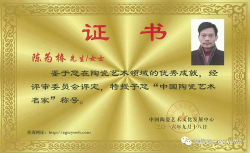 2016年經(jīng)中國陶瓷藝術(shù)文化發(fā)展中心評(píng)審委員會(huì)評(píng)定為“中國陶瓷藝術(shù)名家”