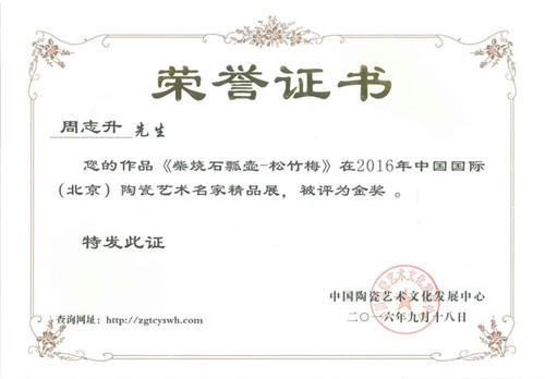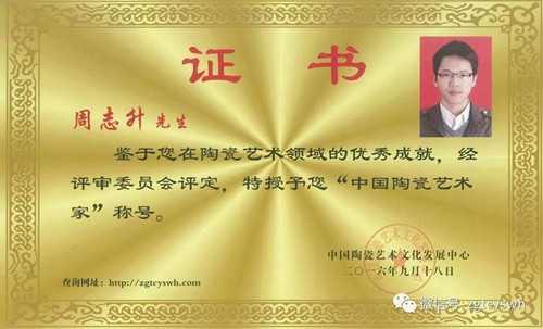 2016年經(jīng)中國(guó)陶瓷藝術(shù)文化發(fā)展中心評(píng)審委員會(huì)評(píng)定為“中國(guó)陶瓷藝術(shù)家"