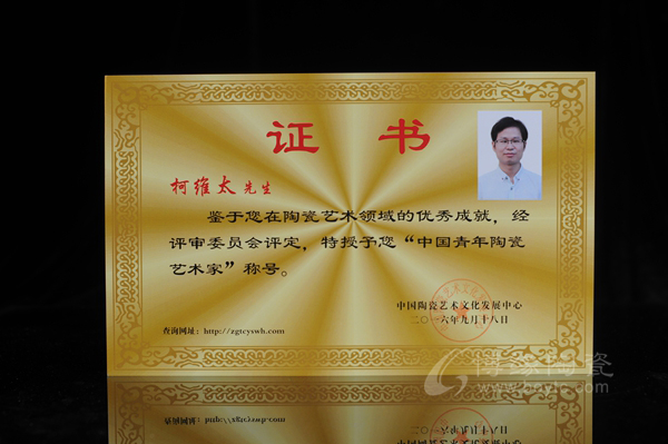 2016年9月18日獲評“中國青年陶瓷藝術(shù)家”