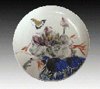 粉彩《晴雯補(bǔ)裘》扇形瓷板