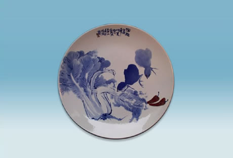 用青花分水描繪兩只小雞在春天的世界里,那樣的淘氣有趣,那樣的富有生氣,一幅生機勃勃,充滿情趣的生活畫面展現(xiàn)在了面前。
