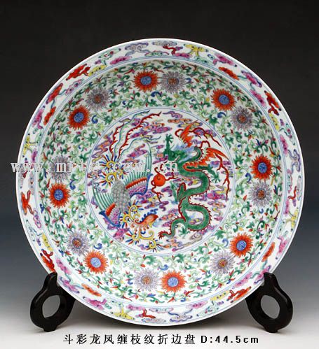 青花斗彩龍鳳纏枝紋折邊盤