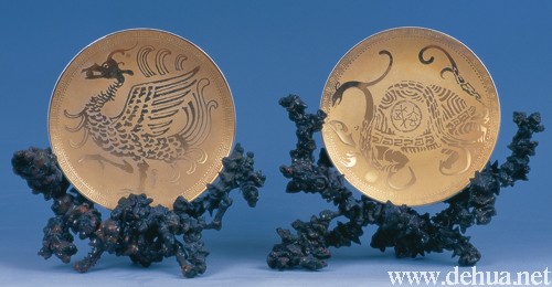 《腐蝕金四方四神藝術掛盤》,創(chuàng)作于2002年5月,榮獲第三屆福建省工藝美術精品“爭艷杯”大賽優(yōu)秀獎。