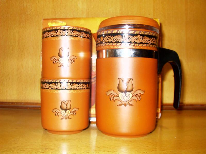 本產(chǎn)品使用方便,沖泡快速,容易清洗。 同一杯組,可同時(shí)泡茶,過濾及飲用。 本產(chǎn)品不吸異味,能保留原有的茶香,可當(dāng)鑒定杯。 可泡綠茶,花茶,普洱茶等茶葉,且不必?fù)Q過濾紙。 Easy to use of washing,qiuk brewing. AU in one,design bets you use your kener cup to brew filter and drink tea. Will not absorb odors,can be keep of the tea's onginal aroma and used for tea tasting. Brewing many kinds of tea with green tea,flower tea,pu-er tea,it doesn't need filter paper. 一壺加兩杯包彩盒 零售價(jià):花紙(綠蓮、金蓮、花邊)一套38 手彩(蘭、竹、山水)一套40 出廠價(jià)面議!