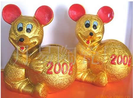 陶瓷電鍍賀年金鼠(抱球)