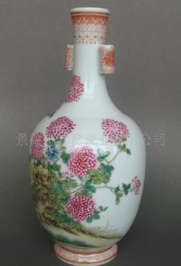 琺瑯彩月季石紋雙耳瓶