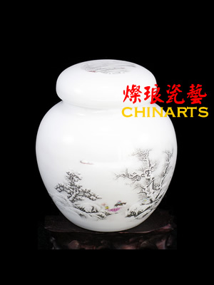 基本信息:產(chǎn)品編碼:CJ-CG-XC-A004產(chǎn)品名稱:精品細瓷粉"溪山瑞雪"彩茶葉罐產(chǎn)品規(guī)格:H*Φ*Φ=10*9*9包裝材料:錦盒包裝