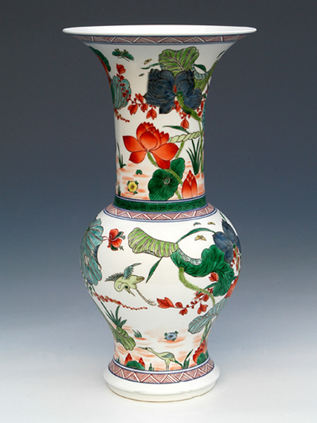 仿清代康熙五彩金鷺鷥荷花紋鳳尾尊一路榮華
