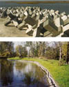 *杰克多面體 一種高穩(wěn)定性、高透水性、超強聯(lián)鎖的特殊造型濱水工程構(gòu)件。任意方式放置均形成穩(wěn)定的三角形支架結(jié)構(gòu),有效阻止水流沖刷深淘堤岸坡腳。 l 用于橋墩底部或水下光纜保護(hù)時,能夠抵抗高速水流的漩渦效應(yīng),起到有效的保護(hù)作用。 l 用于河堤、湖濱或海堤海岸時,穩(wěn)定的結(jié)構(gòu)可抵抗高速水流的沖刷,起到有效的消浪作用。并可在眾多聯(lián)體間隙中填上適當(dāng)土壤種植花草樹木美化環(huán)境。 l 用于抗洪救災(zāi)中處理種種崩岸,可代替?zhèn)鹘y(tǒng)拋石等方案,是最有效、最快捷、最經(jīng)濟(jì)的方案之一。 香根草 香根草是一種適應(yīng)性強、生物量大、易種好管的粗放型禾木本科多年生植物。其根系發(fā)達(dá)、縱向伸長可達(dá)2-5米,同時相互交錯形成網(wǎng)狀根系,具有強大的固土能力。平均抗拔力為75Mpa,相當(dāng)于鋼筋抗拉強度的六分之一。香根草耐鹽堿抗水淹,對土壤廢水中的重金屬、有機磷、氮化合物和放射性物質(zhì)具有很強吸收作用,同時種植香根草絕白蟻對壩堤的危害。因此可作穩(wěn)定斜坡、減經(jīng)侵蝕、凈化環(huán)境的首選產(chǎn)品,與護(hù)坡塊體結(jié)合形成最有效的生態(tài)堤壩。 防浪護(hù)作用的主要試驗: 美國Tetra Tech有限公司。1981 研究鉸接式水工砌塊護(hù)坡系統(tǒng)在各種波浪作用下的工作性能 荷蘭代人特水利學(xué)實驗室。1983 確定鉸接式水工砌塊護(hù)坡系統(tǒng)所能承擔(dān)的極限波浪 美國Tekmarine有限公司。1984 鉸接式水工砌塊防浪護(hù)坡大型模型試驗 用于公路、鐵路護(hù)坡的優(yōu)點 l 深根的錨固作用:植物和垂直根系可起到預(yù)應(yīng)力錨桿的作用。 l 深根的加筋作用:草根可使土體強度提高。 l 降低坡體孔隙水壓力:植物通赤吸收和蒸騰坡體內(nèi)水分,從而達(dá)到了穩(wěn)定邊坡體的目的。 l 降雨截留,消弱濺蝕:植被能使部分降雨在到達(dá)破面之前被截留,使其重新蒸發(fā),從而減少土粒的飛濺。 l 控制土粒流失:植被能抑制地表徑流并削弱雨滴濺蝕,從而控制土粒流失,恢復(fù)被破壞的生態(tài)環(huán)境;邊坡植物的存在可使被破壞的生物鏈又逐漸形成,從而可慢慢恢復(fù)到原始自然環(huán)境狀態(tài)。 l 降低噪聲、光污染,使行車更安全:植被能吸收刺耳的聲音,多方位反射太陽光線,從而保證行車安全。 l 促進(jìn)有機污染物的降解, 凈化大氣,調(diào)節(jié)小氣候。 |