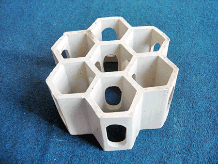 輕型瓷質(zhì)規(guī)整六棱組合環(huán)高效規(guī)整填料是綜合眾多填料的優(yōu)點(diǎn),通過多年實(shí)踐研制成功應(yīng)用的一種新型高效規(guī)整填料.該產(chǎn)品采用高真空一次成型,表面采用特殊材質(zhì)及工藝精制而成.其結(jié)構(gòu)合理,在氣液通過時增長了停留時間,充分形成液膜,且耐腐蝕,抗壓強(qiáng)度高,比表面積大.傳質(zhì)效率高,操作比重輕,使用壽命長等特點(diǎn),是其它填料無法比擬的. 該產(chǎn)品是化肥、焦化、煤氣、化工、冶金、硫酸等行業(yè)應(yīng)用的理想規(guī)整填料,已廣泛在內(nèi)蒙、青海、萊蕪、太原、晉城、長冶、安陽、寶雞、紅河洲等廠家在焦化脫硫、洗苯、洗氨、洗萘和化肥行業(yè)脫硫、洗滌、清洗冷卻、熱水飽和塔及硫酸干、吸塔中充作填料. |