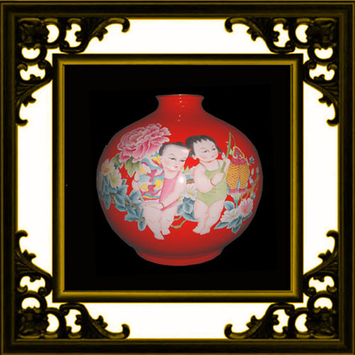 嬰戲彩繪球瓶