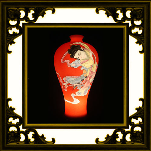 嬰戲彩繪燈罩梅瓶
