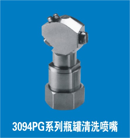 | 3094PG系列旋轉(zhuǎn)瓶罐扇形清洗噴嘴是由三個高沖擊力扇形噴嘴安裝或一體式加工于噴嘴旋轉(zhuǎn)裝置上組成,通過液體壓力和不同的力矩噴射方位設(shè)計(jì)達(dá)到自動旋轉(zhuǎn)同時內(nèi)部表面完全清洗的目的 |