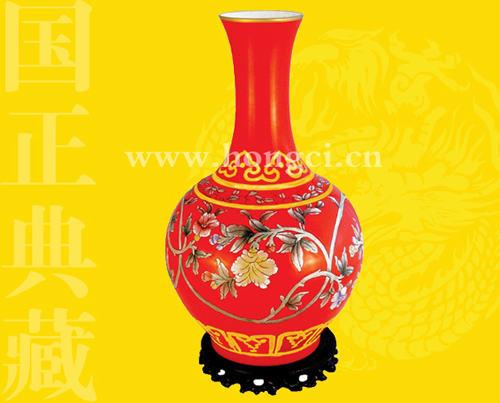 大號(hào)彩繪手工堆雕富貴花賞瓶