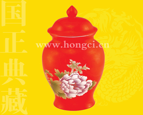 彩繪牡丹將軍罐