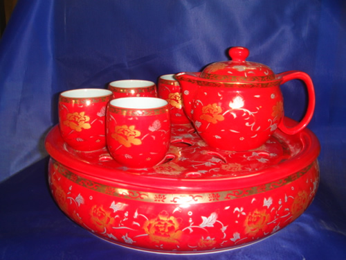 紅金牡丹茶具套裝 |