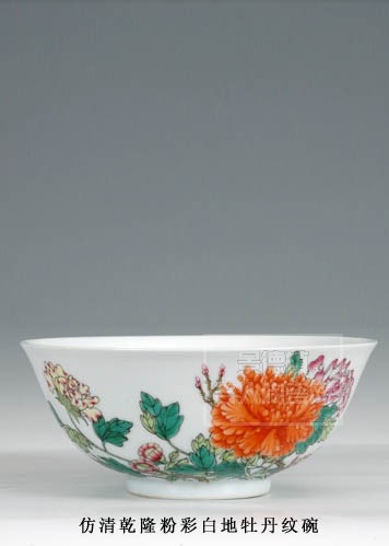仿清乾隆粉彩白地牡丹紋碗 |