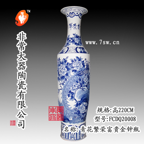 公司級(jí)禮品 岷天大花瓶 送禮上檔次 收禮有面子 三點(diǎn)六萬(wàn) 全國(guó)包運(yùn) 【岷 天】:中國(guó) 大花瓶 第一品牌 【非常大器】:中國(guó)首家大花瓶專營(yíng)公司 中國(guó)專業(yè)大花瓶定制機(jī)構(gòu) 【名 稱】:岷天大花瓶 民窯精品 民間藝術(shù)品 【型 號(hào)】:岷天大花瓶標(biāo)準(zhǔn)規(guī)格為高1.8米\2.2米\3米\3.5米 (其中廳堂高度5米以下適用1.8米與2.2米高花瓶,廳堂高度5米以上適合用3米與3.5米大花瓶) 【價(jià) 格】:2011年價(jià)格,三米高3.6萬(wàn)元一對(duì)、二米二高1.8萬(wàn)一對(duì)、一米八高1.2萬(wàn)元一對(duì)。 【鄭重承諾】:全國(guó)包運(yùn)、破損包賠。 【定購(gòu)流程】:您通過(guò)電話或者網(wǎng)絡(luò)確定訂單,其余事情都由我公司負(fù)責(zé),將在五天左右將大花瓶安全高效運(yùn)到客戶指定城市。 【產(chǎn)品特點(diǎn)】:岷天大花瓶為景德鎮(zhèn)非常大器陶瓷有限公司出品的頂級(jí)禮品瓷器,適應(yīng)大場(chǎng)所,大場(chǎng)面。從顏色方面、造型方面都搭配非常協(xié)調(diào)。從檔次上考慮,花瓶為民間藝術(shù)家手工繪畫(huà),手工制作,包括胚胎都是非?季康,而且如此有氣勢(shì)、紀(jì)念意義強(qiáng)烈的花瓶,做為禮品是非常珍貴的。是政府之間、公司之間、客戶之間、朋友之間禮尚往來(lái)的見(jiàn)證,是往來(lái)嘉賓關(guān)注的焦點(diǎn),特點(diǎn)就在于它的大氣、美觀,珍貴,保存時(shí)間長(zhǎng),吸引眼球,欣賞率高,讓大家都會(huì)記得您的大禮! 【送禮范圍】:岷天大花瓶多用于大廳、門廳、客廳等廳堂擺設(shè),主要用于、政務(wù)禮品、商務(wù)禮品、紀(jì)念禮品,開(kāi)業(yè)禮品。用于建筑落成、工程竣工開(kāi)業(yè)、奠基典禮、酒店賓館陳設(shè)、企事業(yè)單位喬遷、周年紀(jì)念 、學(xué)校校慶、搬遷新居等。 【特殊訂制】:有特殊需要,在大花瓶身上可燒制LOGO、公司名稱、人名、贈(zèng)言,紀(jì)念用語(yǔ),年月日等。 【產(chǎn) 地】:中國(guó)景德鎮(zhèn)。 【包 裝】: 加固安全木架包裝。 【運(yùn) 輸】:國(guó)內(nèi)采用公路物流運(yùn)費(fèi),五天左右到達(dá),我們有專業(yè)物流發(fā)貨基地,確保貨物安全、高效地到達(dá)客戶手中! 岷天大花瓶幾大吉祥寓意 【諸事平安】 花瓶類瓷器,極易破損,只有在太平和睦環(huán)境中才能保全,古人說(shuō)家有花瓶人安樂(lè),廳堂中擺放大花瓶,是萬(wàn)事平安的像征。 【富貴滿堂】 自古以來(lái),大件瓷器罕有,只有皇親貴族、達(dá)官顯貴家才有擺設(shè),廳堂擺放大花瓶,是官運(yùn)亨通,富貴滿堂的像征。 【財(cái)源廣進(jìn)】 大花瓶以山水類題材較多,水在中國(guó)就是財(cái)富的說(shuō)法,廳堂擺放大花瓶,像征著財(cái)源廣進(jìn)。 【鎮(zhèn)宅之寶】 岷天大花瓶,由金(釉料顏料)+木(燒窯之木柴)+水(和泥拉坯造型)+火(燒制)+土(瓷土)五種元素制成,能彌補(bǔ)建筑或建筑內(nèi)的人員的五行不足,扶正驅(qū)邪,廳堂擺放大花瓶,起著鎮(zhèn)宅的作用。 【公司簡(jiǎn)介】景德鎮(zhèn)非常大器陶瓷有限公司,作為中國(guó)首家大花瓶專營(yíng)公司,是以設(shè)計(jì)、加工、定制陶瓷大花瓶專業(yè)機(jī)構(gòu),公司開(kāi)發(fā)出岷天牌陶瓷大花瓶,1.8米系列\(zhòng)2.2米系列\(zhòng)3米系列\(zhòng)3.5米系列等標(biāo)準(zhǔn)尺寸大花瓶,工藝上采用青花\釉里紅\墨彩\粉彩\新彩\顏色釉\書(shū)法\雕刻等景德鎮(zhèn)民間傳統(tǒng)手工技藝制作,歡迎新老客戶商洽。 我們的宗旨:宏揚(yáng)景德鎮(zhèn)民間瓷器文化 我們的目標(biāo):打造中國(guó)大花瓶第一品牌。 我們的理念:真誠(chéng)維護(hù)客戶利益、真心關(guān)注員工成長(zhǎng)、真情回饋社會(huì)關(guān)愛(ài)。 |