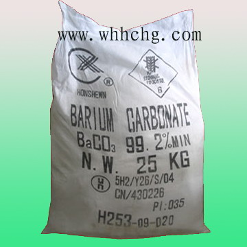 碳酸鋇 分子式:BaCO3 分子量:197.35 產(chǎn)品性狀:本產(chǎn)品系無定形白色粉末,比重:4.43,熔點(diǎn):1740℃(90大氣壓),1450℃分解失去二氧化碳,不溶于水,不溶于酒精,能溶于酸及氯化銨溶液。口服有毒,進(jìn)入胃內(nèi),溶于酸中變成可溶性的氯化鋇,故能發(fā)生中毒,系有毒品之一。 執(zhí)行標(biāo)準(zhǔn): 項(xiàng)目 優(yōu)等品 一級(jí)品 合格品 含量(BaCO3)%≥ 99.2 99.0 98.5 水份%≤ 0.30 0.30 .050 鹽酸不溶物灼燒殘?jiān)?≤ 0.15 0.25 0.50 總硫%≤ 0.20 0.30 0.40 鐵%≤ 0.004 0.004 0.008 細(xì)度:粉狀125μm試驗(yàn)篩篩余物%≤ 0.20 0.30 .050 細(xì)度:粉狀850μm試驗(yàn)篩篩余物%≤ 1 1 1 細(xì)度:粉狀150μm試驗(yàn)篩篩余物%≥ 75 75 75 用途:化工行業(yè)及洗滌劑廠生產(chǎn)磷酸五鈉等產(chǎn)品用碳酸鋇脫硫。電鍍行業(yè)用以含鉻污水處理。玻璃行業(yè)中用于X光玻璃、注射藥瓶、燈泡、玻殼、玻梗等玻璃產(chǎn)品中,能使玻璃潔白、堅(jiān)硬。用于高頻瓷,可增加瓷的潔白度。用以配制滲碳劑,改善中碳鋼材的結(jié)構(gòu)。在陶瓷工業(yè)中,用作助熔劑。還可以用作凈水劑和殺鼠劑。 包裝規(guī)格: 用內(nèi)襯塑料袋,外加塑料編織包裝,每袋凈重25公斤或50公斤。 |