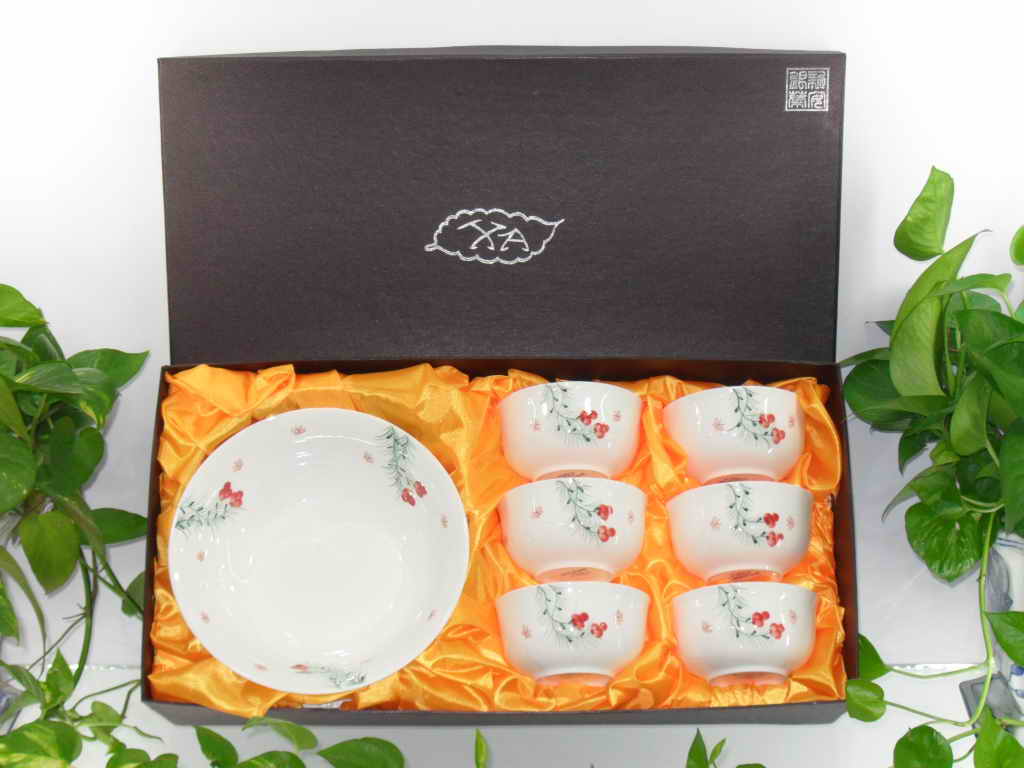 “新安銀葉”鎂玉瓷7件套餐具套裝,含1個(gè)8寸飯盤(pán),6個(gè)4.25寸碗!